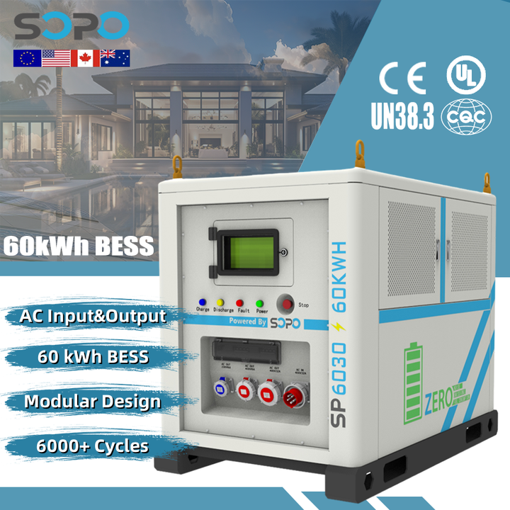 Sopo แบตเตอรี่ลิเธียมไอออนแรงดันสูง60kWh ใช้ให้เช่าเชิงพาณิชย์30kW ระบบจัดเก็บพลังงานอุตสาหกรรมและเชิงพาณิชย์